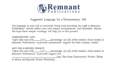 Thank you for your interest in Remnant Publications, Inc., and especially in estate planning. Estate planning may not be at the top of your agenda when making future plans, but it should be. While estate planning isn't the most enjoyable conversation to have, it is crucial to decide how you will distribute your possessions once you pass away. Interestingly, over the past year, there has been an increase in young individuals preparing their estates, which is understandable.